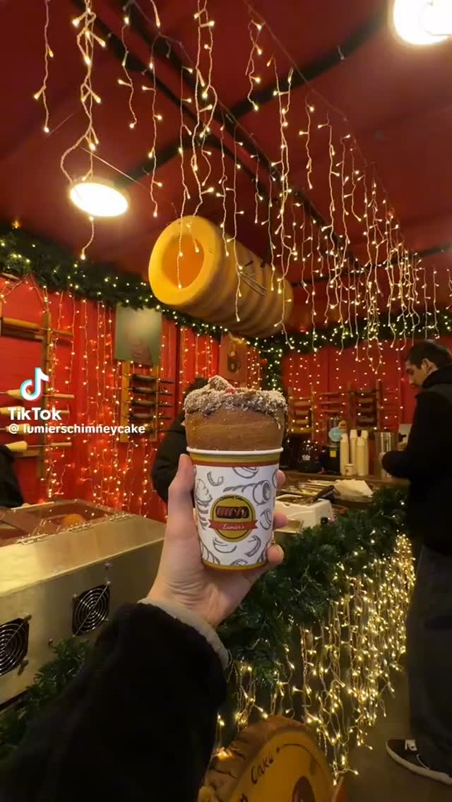 Indulge in a traditional Chimney Cake (Kürtőskalács), freshly baked to golden perfection with a crisp caramelized exterior and soft, fluffy interior. This classic Eastern European pastry becomes a modern dessert masterpiece when filled with rich soft serve ice cream and customized with your choice of fresh fruits like strawberries, mango, or blueberries. Top it off with delicious extras such as crushed Oreos, sprinkles, nuts, or a drizzle of chocolate or caramel for the perfect blend of warmth, sweetness, and creamy delight—all in one unforgettable treat.
